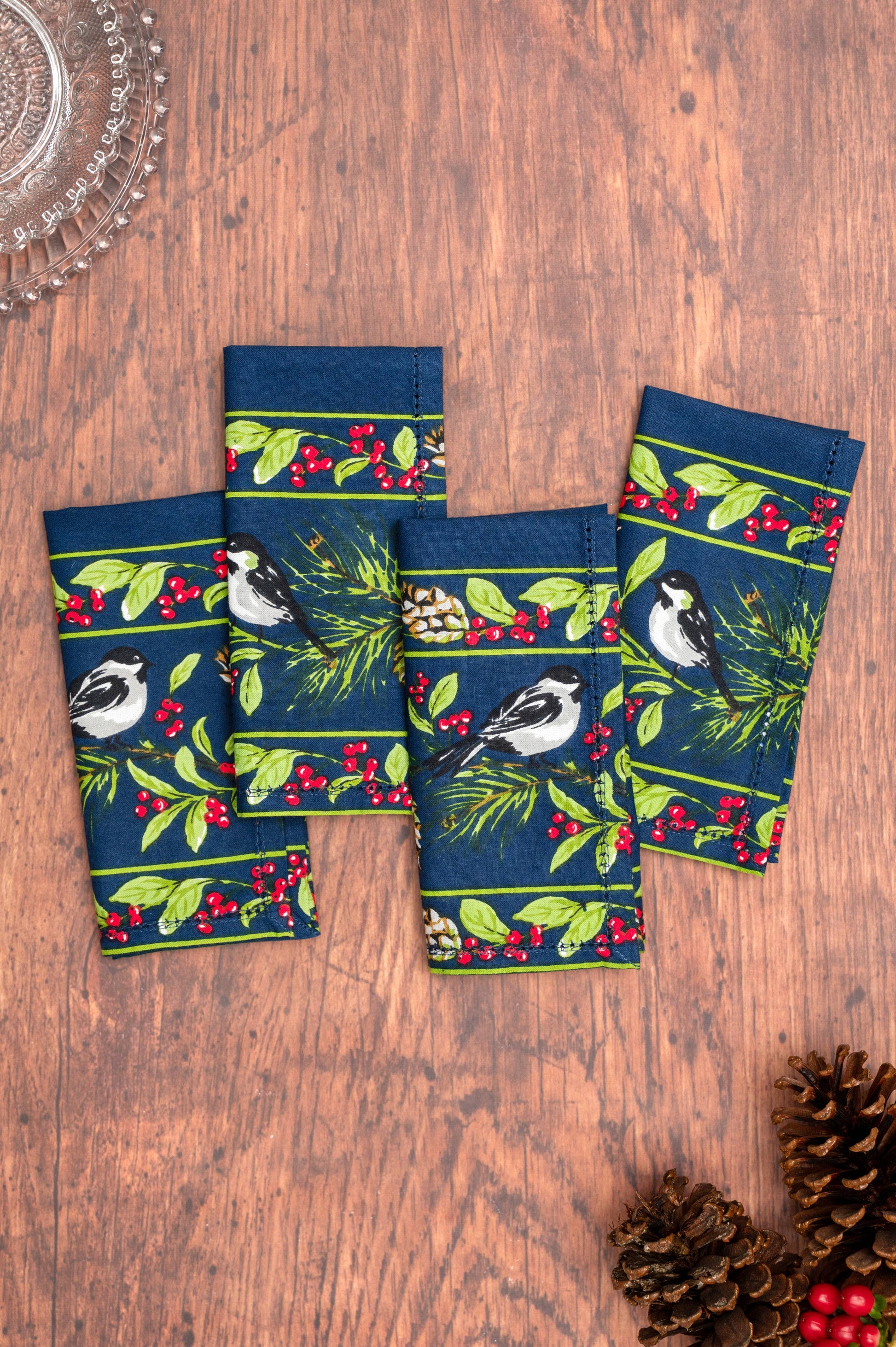 Napkin , Chickadee Luncheon Napkin Set of 4 - Navy